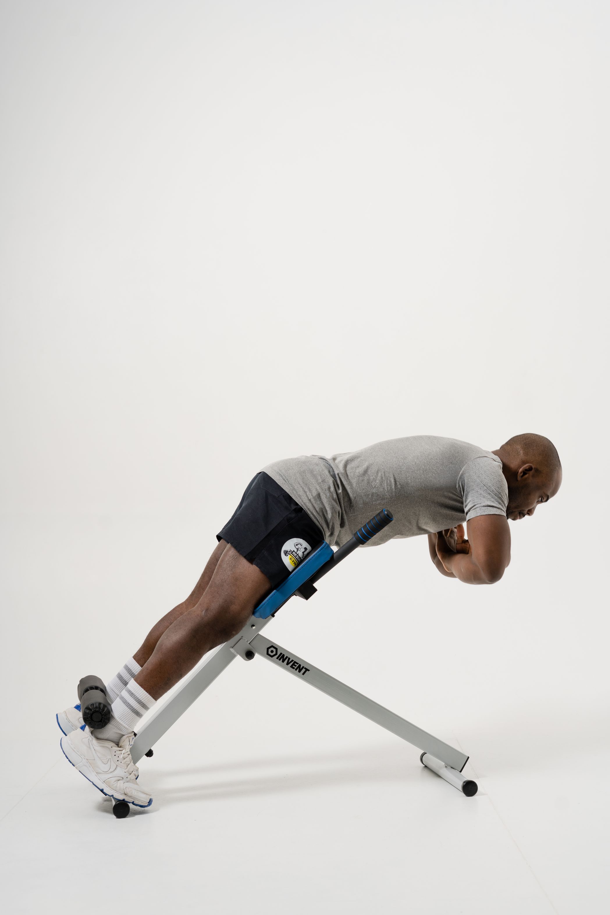 - Регулируемая наклонная скамья для упражнения гиперэкстензия на развитие поясничных мышц.